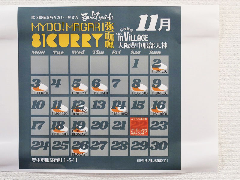 | ■住所 | 豊中市服部南町1-5-11(in ViLLAGE 間借り営業) |