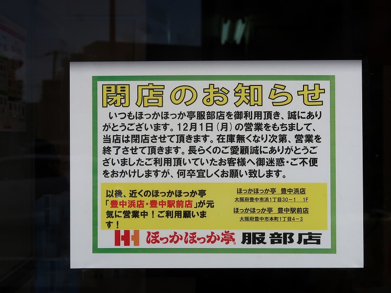 服部本町にある「ほっかほっか亭服部店」が閉店するようです。