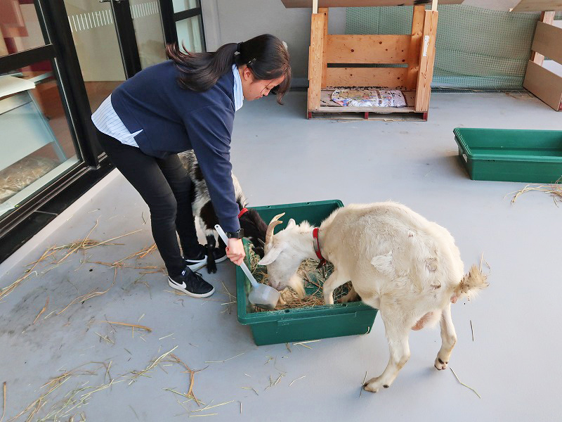 ※テラス解放・ふれあいは不定期/学校帰りにヤギとふれあえるなんていいなぁ・・・