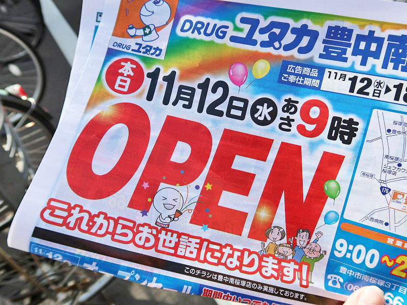 「ドラッグユタカ」は、豊中市内では2店舗目のオープンになります。