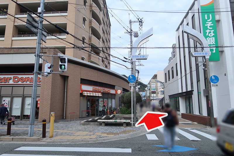 箕面駅近く、ミスタードーナツ1号店があるみのお本通りを入った