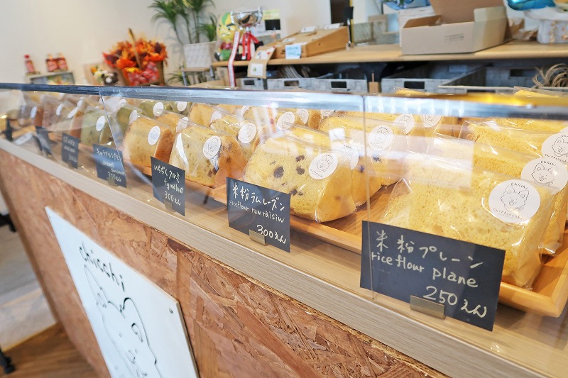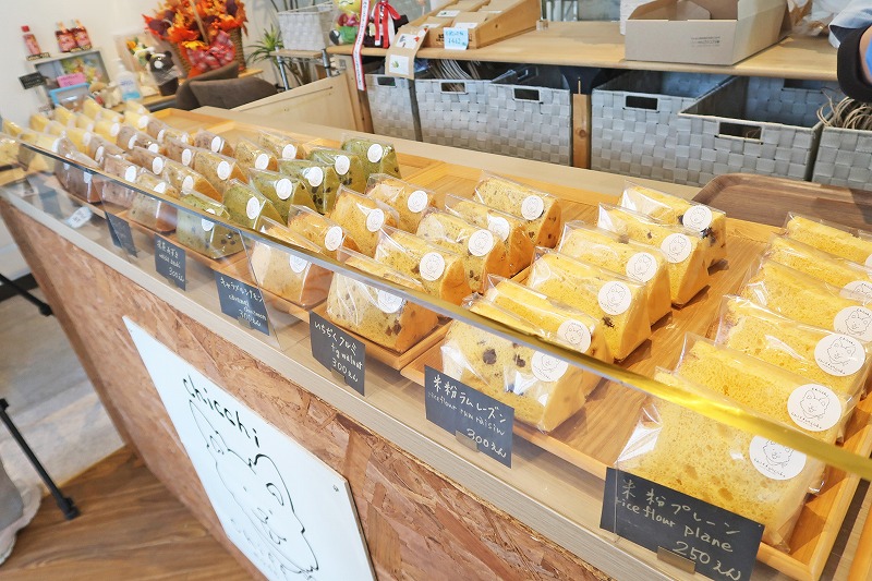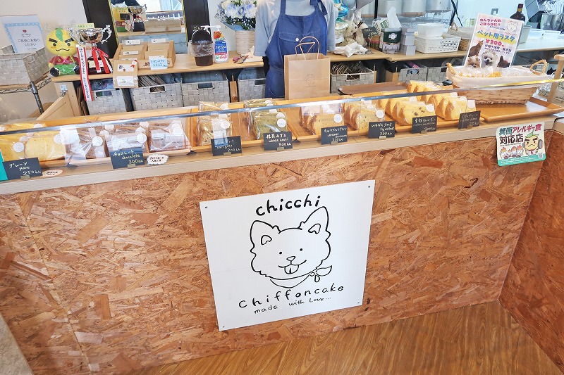 店内に入るとすぐ、カウンターにズラッとシフォンケーキが並んでます。