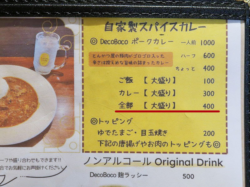 「Deco Bocoスパイス」という店名で、木金土の夜にやってるみたい。