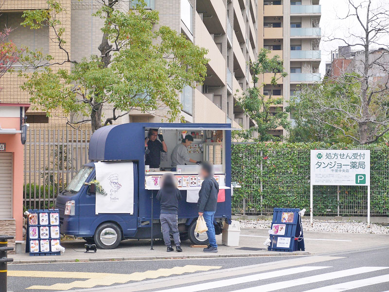 千里中央のロベルトカレラ跡地の薬局に、クレープの移動販売車が来ていました。(中略)どんな店なのか気になります。