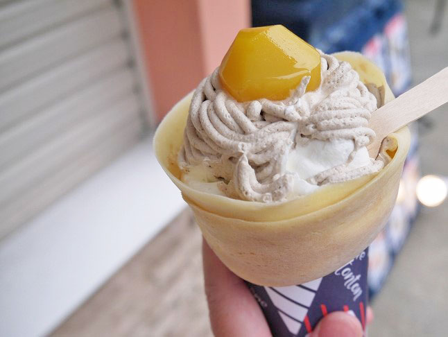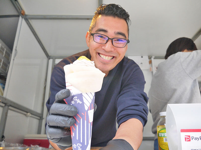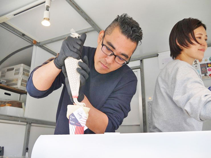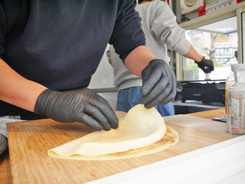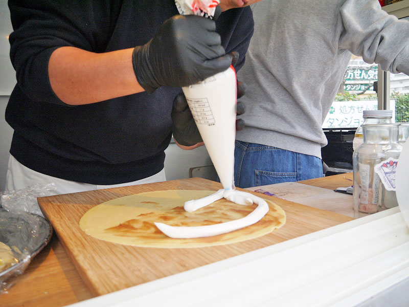 クレープ生地に、慣れた手つきでクリームを乗せていき・・・