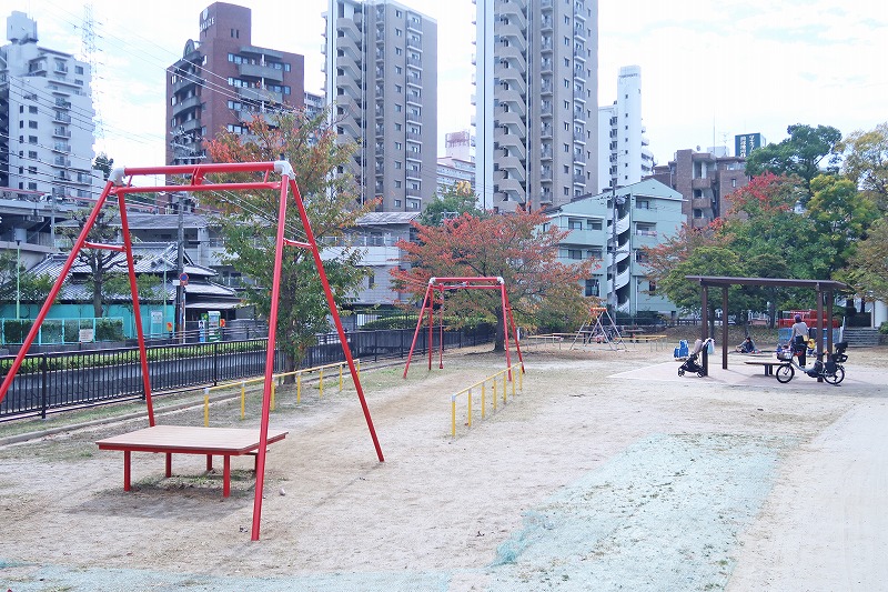 新御堂筋を走っていたらよく見える公園、「いなり山児童遊技場」だ!