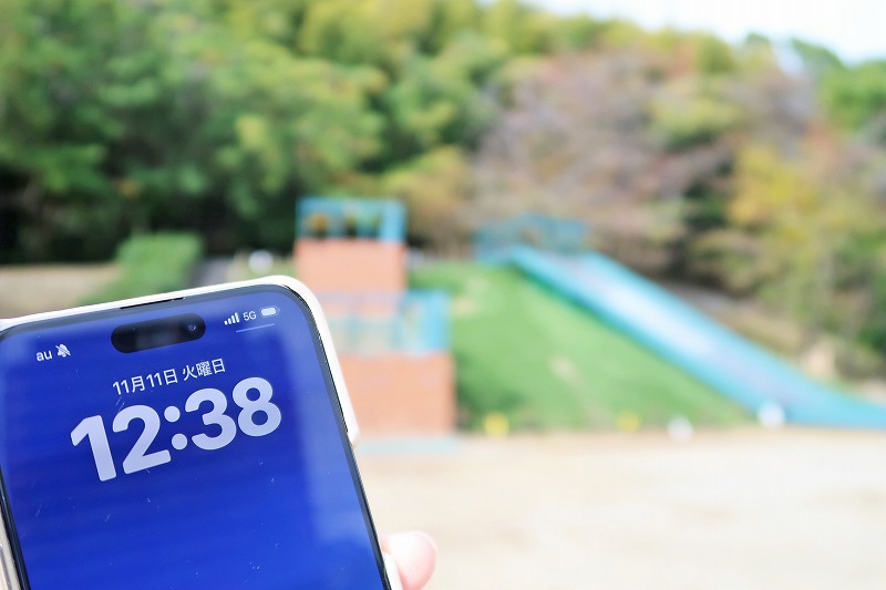長い竹林を抜けて、公園でもちょっと遊んだので、ここで時刻は12時38分。