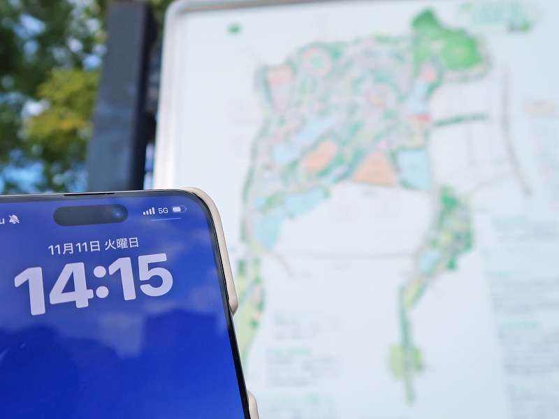 前半では公園の北側をぐるっと回って、ランチを求めて緑地公園の駅前まで来たところで終了しました。