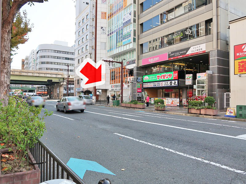 「サイゼリヤ」などが並ぶ通りにあるビルの1階です。