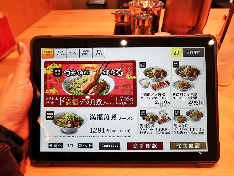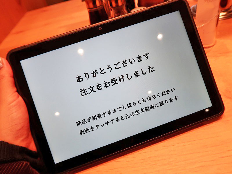 注文はタブレットから。あっさりしてて食べやすい、定番の「おいしいラーメン」にしようかなと思ったんですが・・・