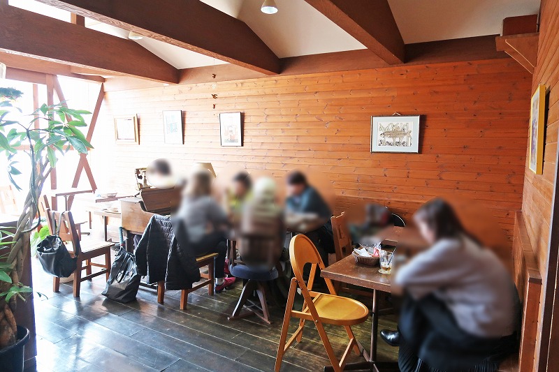 壁際はベンチシートになっていて、2人掛けのテーブルが8卓ほどありますよ。