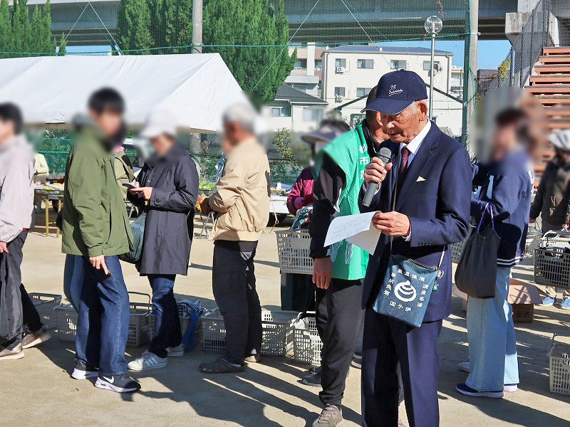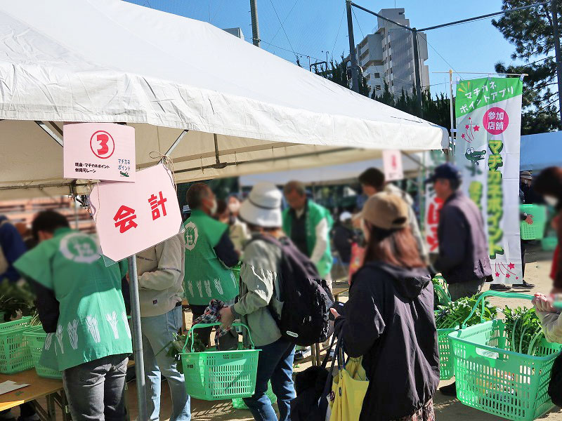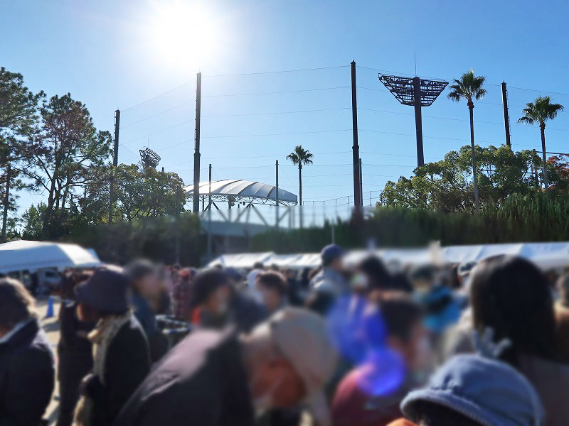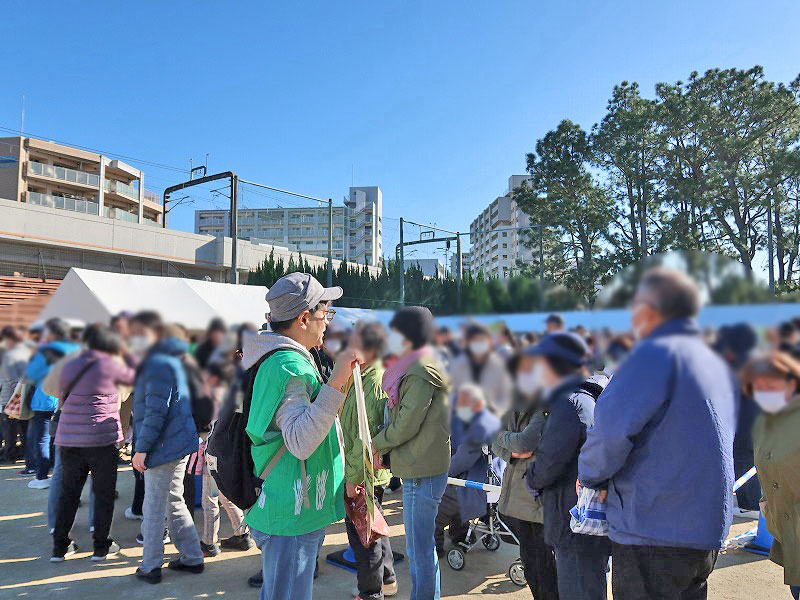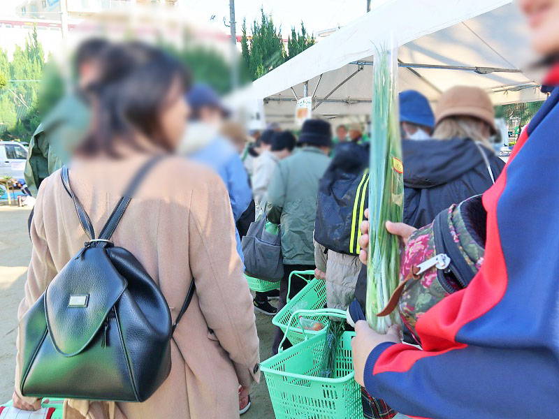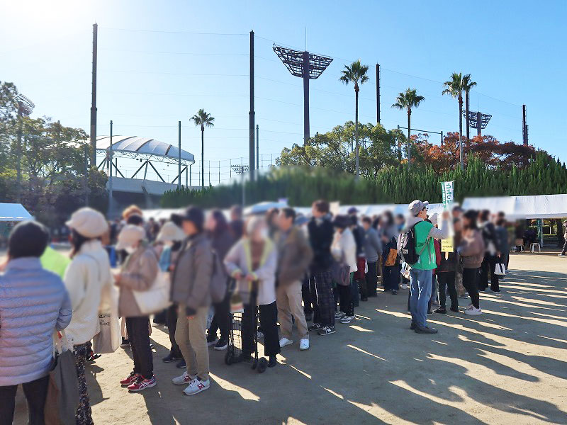 この行列は、会場右手側の豊中市産野菜販売(②~⑦)の待機列です。