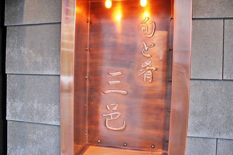 重厚な銅板で作られた看板もシックで、お店に入る前から既にこだわりを感じてしまいますね。