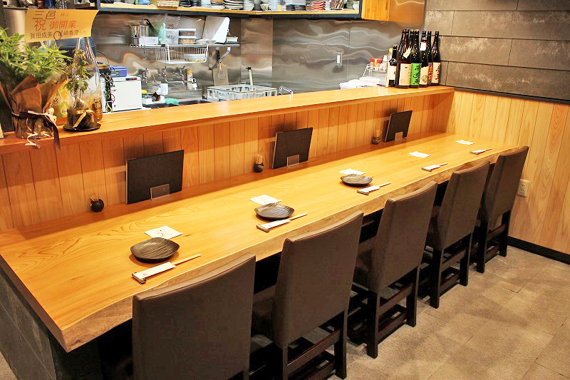 店内に入ってすぐ、目に飛び込んでくる大きなカウンターには5席