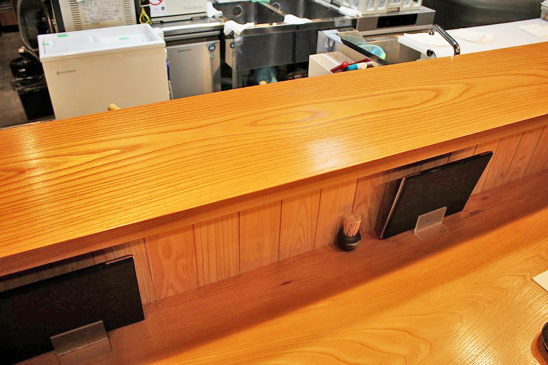 大将にお聞きすると、一枚板はカウンターテーブルだけでなく、カウンター台や