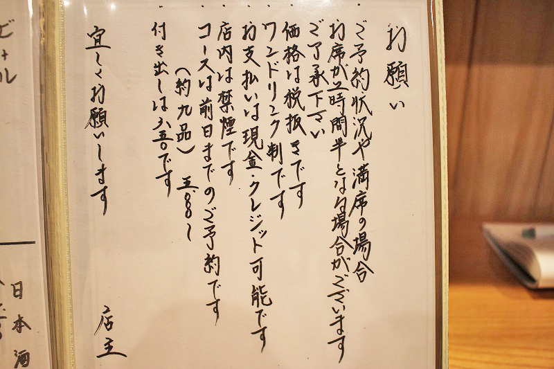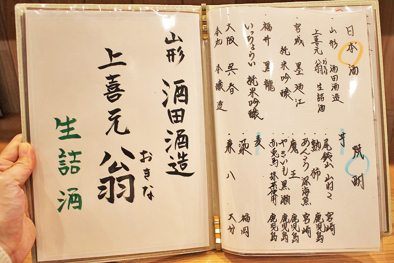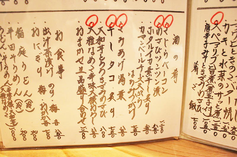 ザっと見渡したところ、移転前のお店の看板メニュー「手作り豆腐」がありませんね。お聞きした所手作り豆腐をやめて、お酒をゆっくり楽しめるメニューコンセプトに切り替えられたそう。