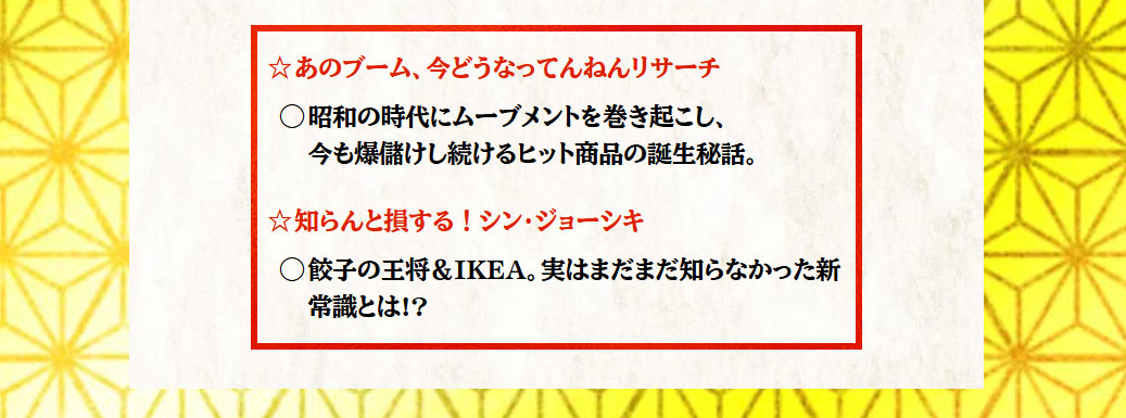 番組ホームページによると『ゼニガメ』世の中に潜む様々な「ゼニ儲け」のカラクリを、出演者とともにクイズ形式で解き明かしていく番組だそう。