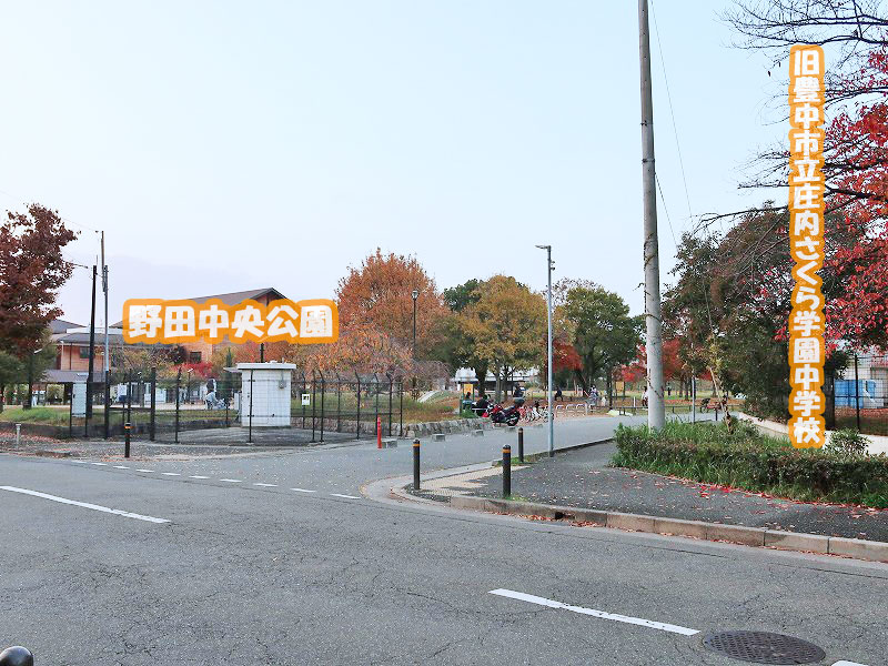 「旧豊中市立庄内さくら学園中学校」と、その西側にある「野田中央公園」をズドーンとくっつけて