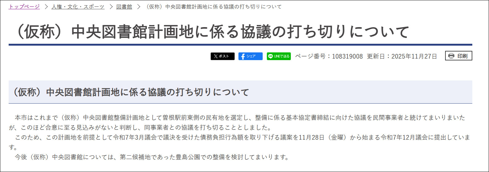 TNNでは、2025年10月に「「豊中市(仮称)中央図書館」の計画に変更がある」と話題にしていましたが(詳しくはこちら)