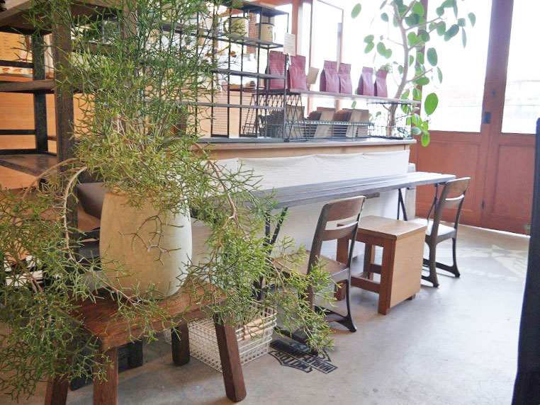 観葉植物もたくさん置いてあり、千里川の緑とも相まってナチュラルな雰囲気ですね。