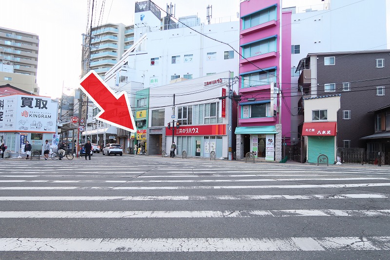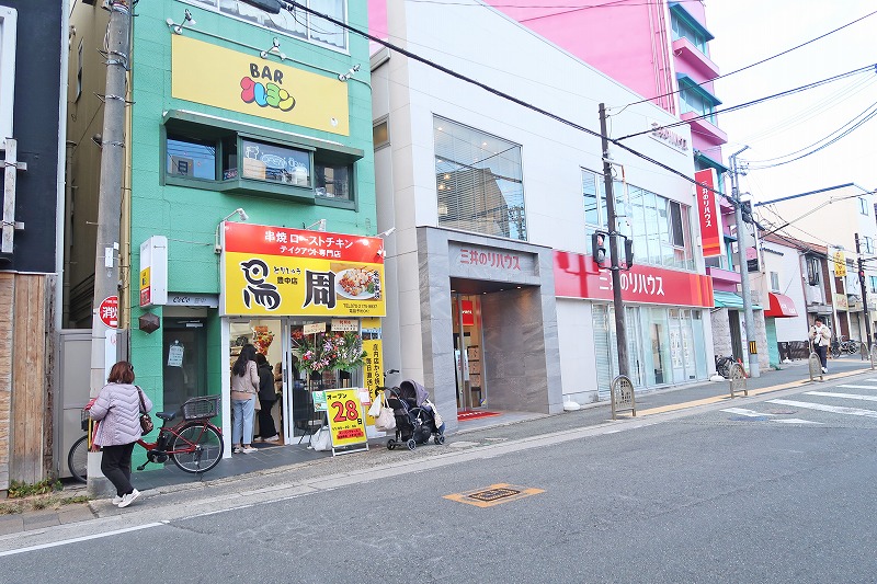 豊中駅前の商店街の北側「三井のリハウス」のあるスクランブル交差点のあたりです。