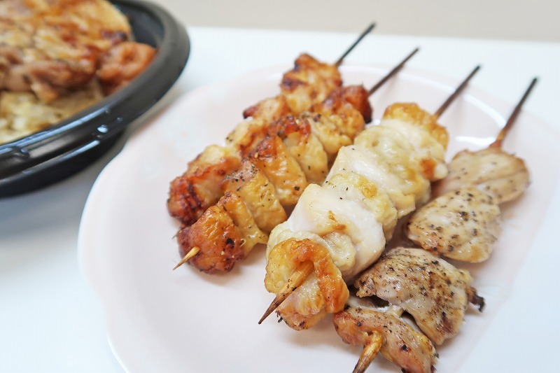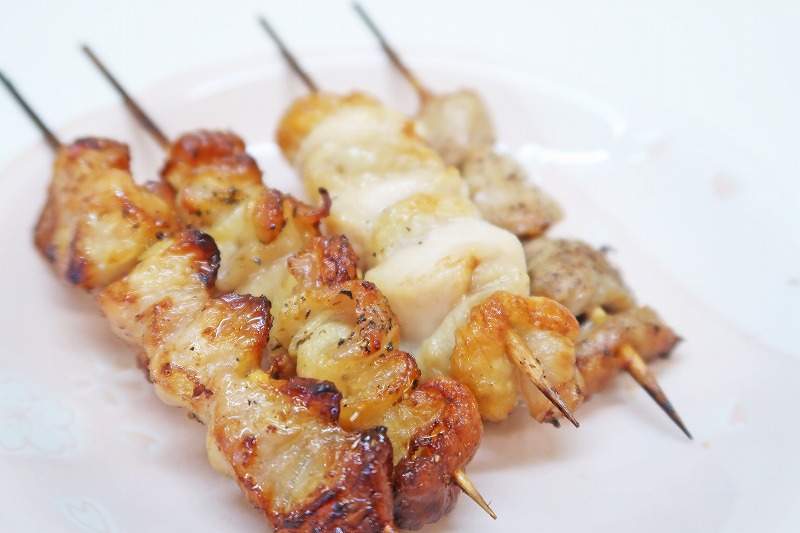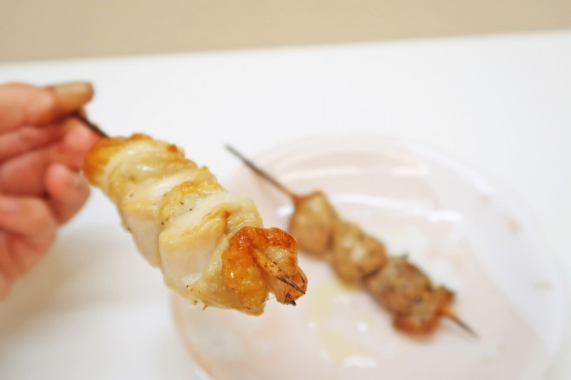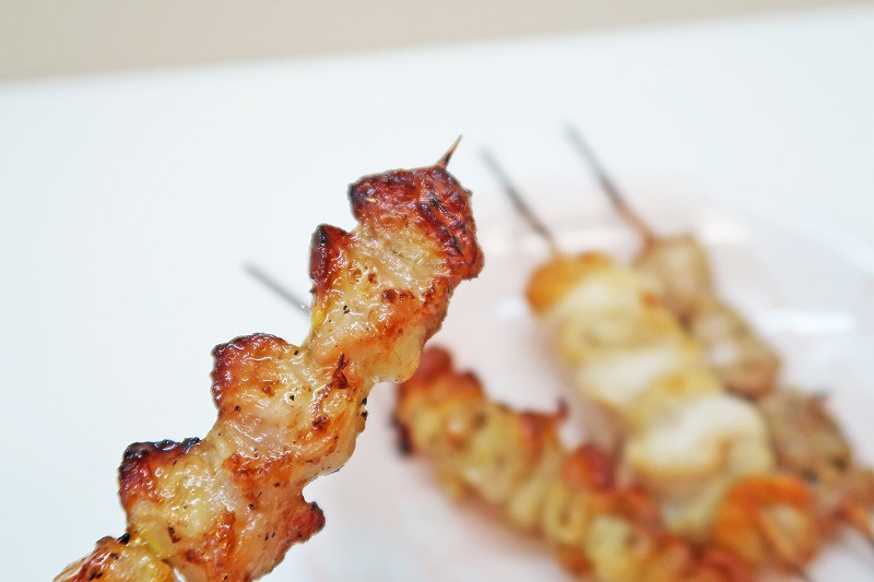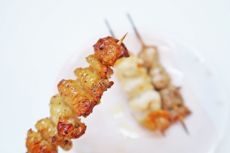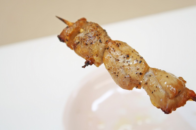 名物串焼は、むね肉と皮が交互に刺されていて、2倍楽しめるお得感がいいですね。
