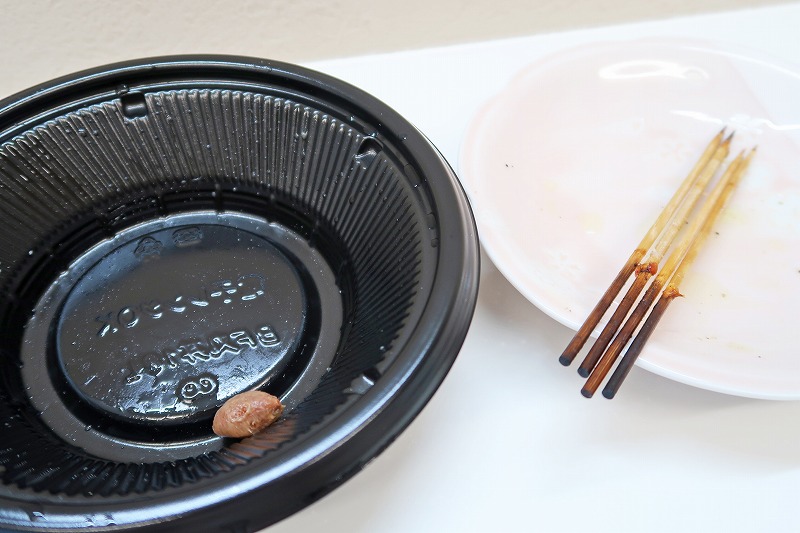 手前からソリレス、名物串焼、皮ハラミ串、ぼんじり串 です。