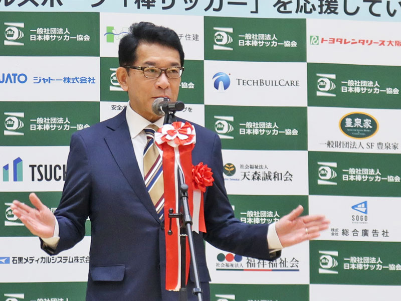 冒頭、長内市長が「怪我に気を付けてハッスルして!」と、大会参加者へエールを送ると
