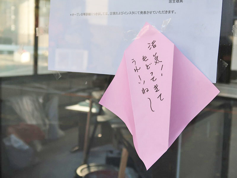 お店の前に貼り紙が貼られていましたよ。そちらによると令和8年1月に再始動されるようです。