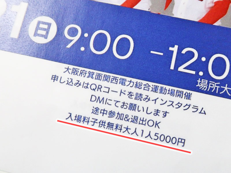※大阪府箕面関西電力総合運動場――なるほどそういう理由だったんですね。そしてこれだけの選手が来られるのに、子どもの入場料は無料なんですね(驚)