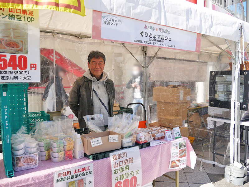 こちらは新千里西町にお店がある「ぐりとよマルシェ」。名物の山口納豆もたくさんスタンバっていましたよ。