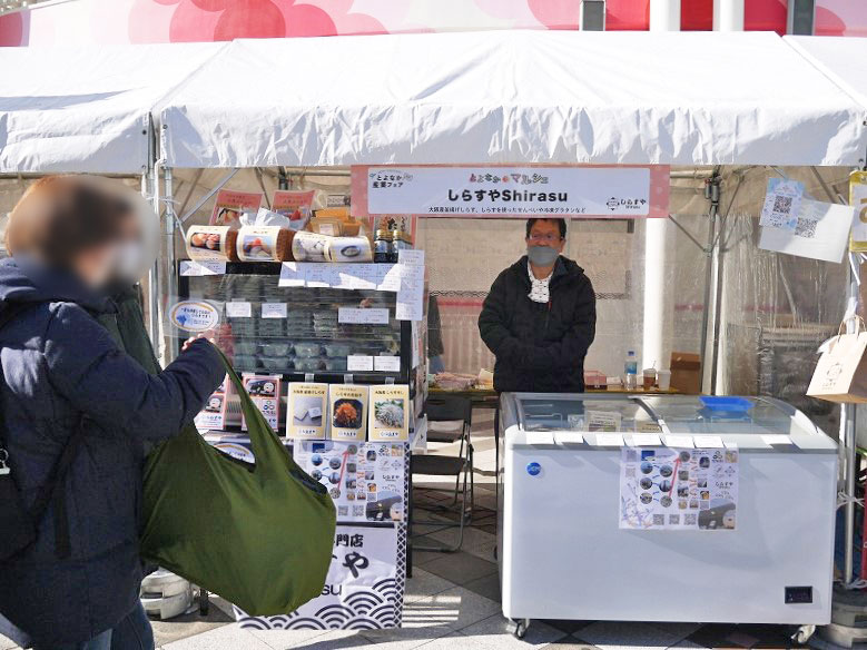 こちらは大阪産しらす専門店「しらすや」。しらすを使用したせんべいや冷凍グラタンなど美味しそうだったな~。