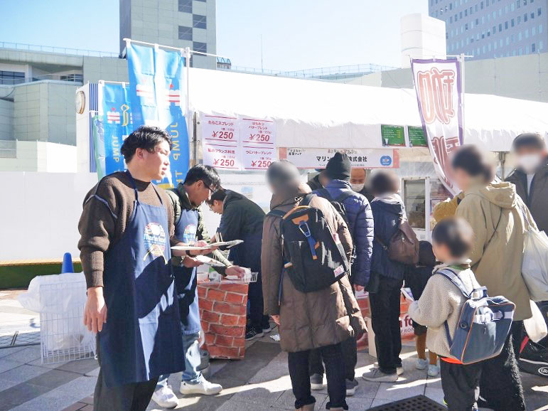 こちらは、TNNスポンサー「マリンフード」のブースですね。さすがの賑わい。