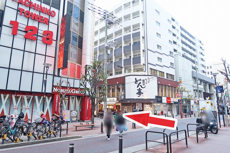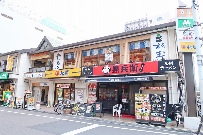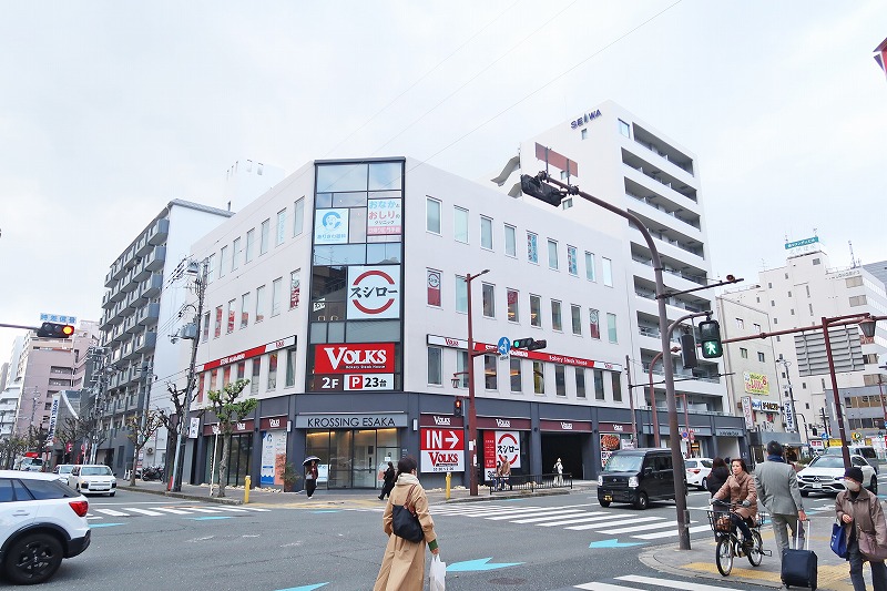 駅の北側の交差点にバーチャル回転寿司が楽しめる「スシロー」もありますが