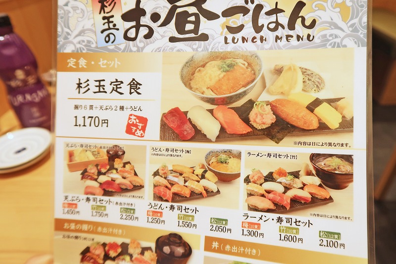 スシローの系列というだけあって、お寿司にうどんや天ぷらが付く定食がメインみたい。