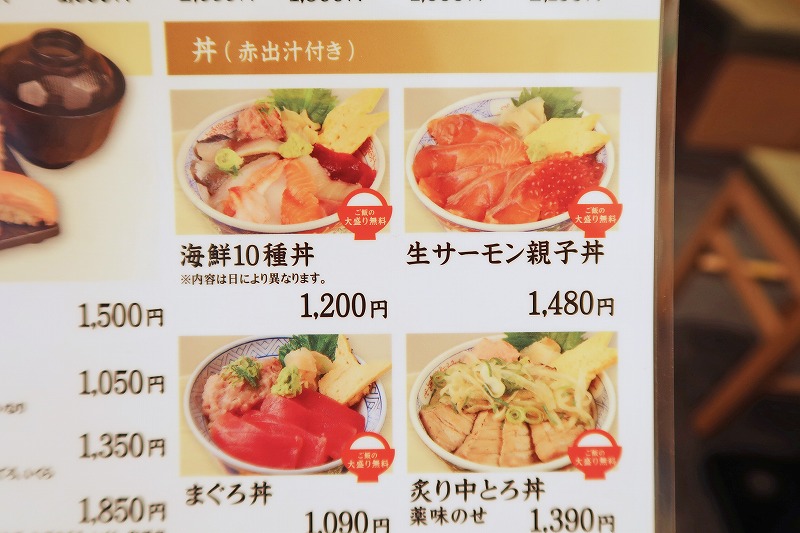 お寿司と赤だしのセットもあって、ネタや数で好きなものを選べるようになってますね。