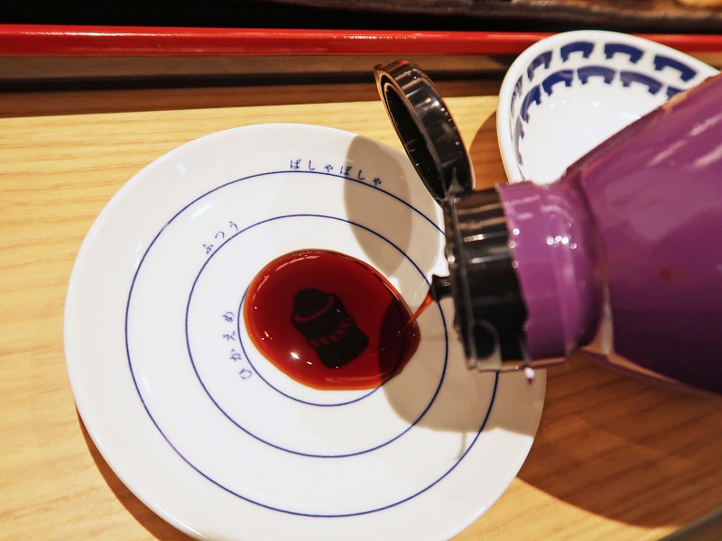 まずは、やっぱりお寿司からということで、お醤油を入れて準備OK!