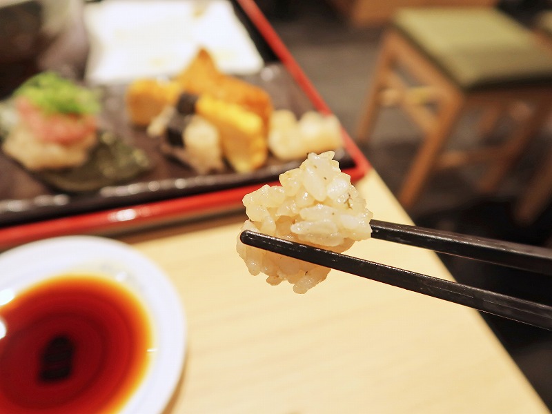 このシャリ、黒酢とバルサミコ酢をブレンドして、お酒に合う味にしてるんだって。