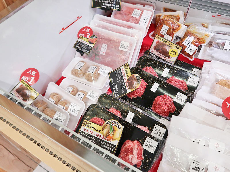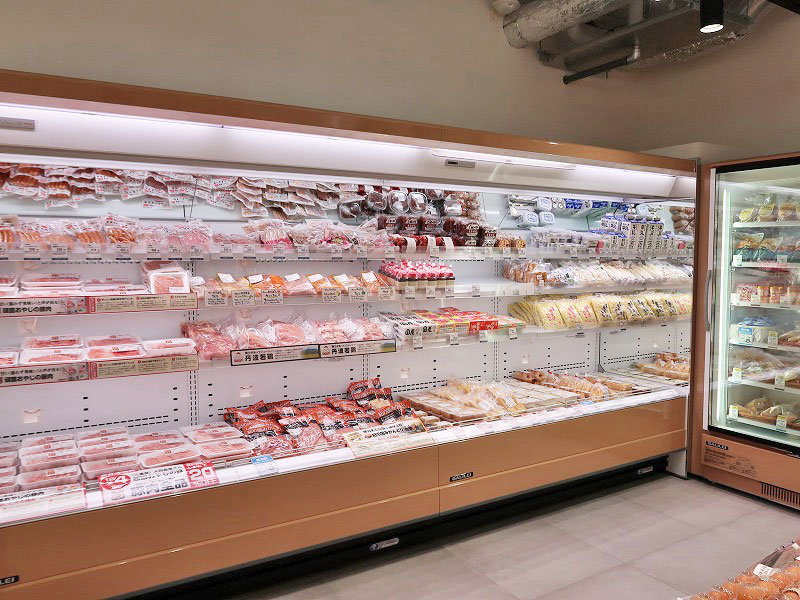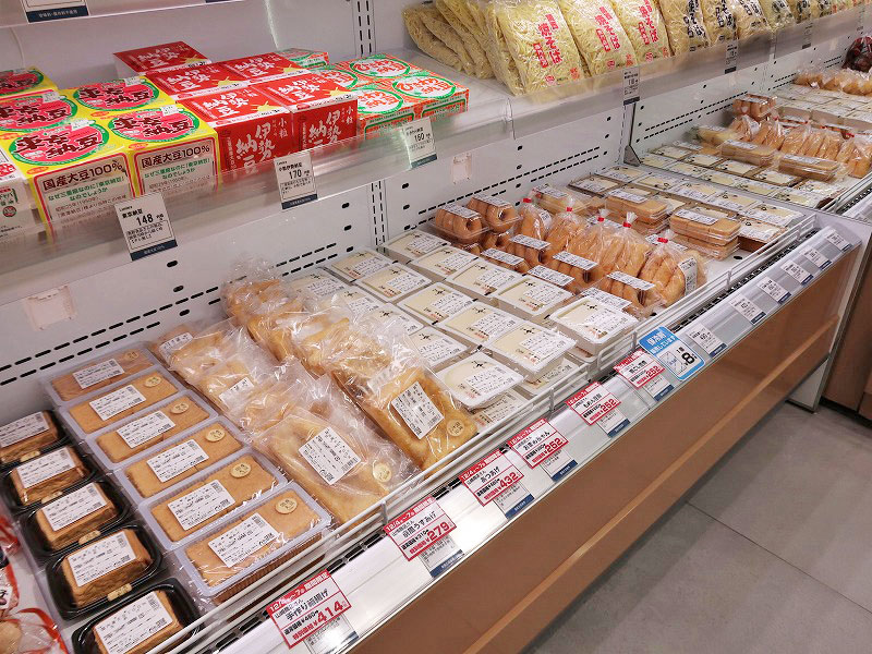 右隣の冷蔵ショーケースには、豚肉やお豆腐なども。