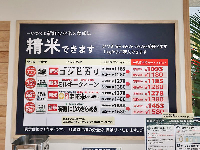 お米は1kgから購入可能。その場で精米してくださるそうなので、一人暮らしの人も買いやすいですね。