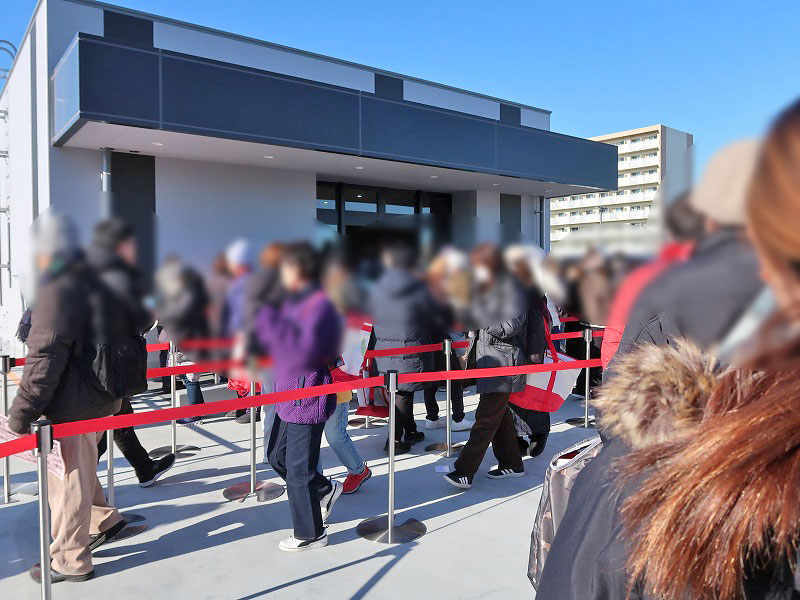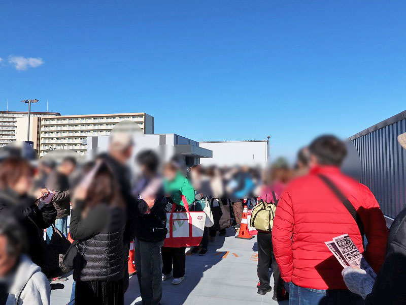 うわ~すごい人!屋上の駐車場を利用して、そこに待機列を作ってるのか!