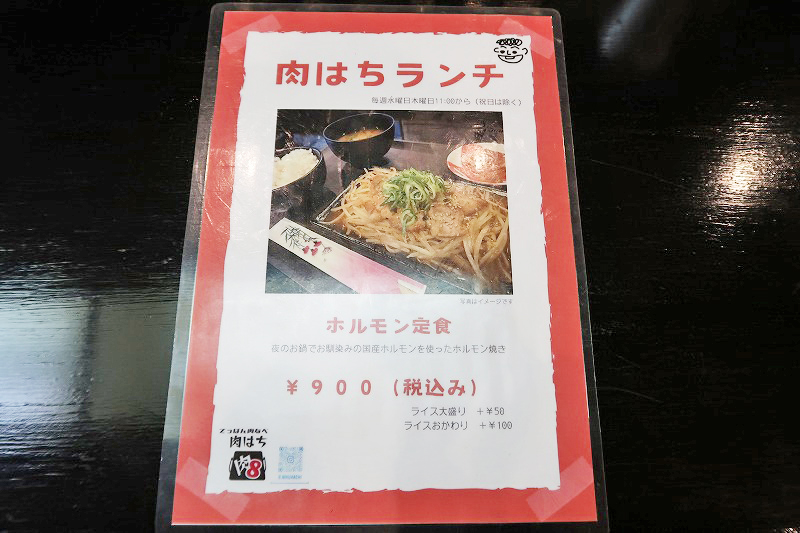 ランチメニューはホルモン定食のみ!ホルモン一本勝負って感じが潔くていいですね。さっそくお願いします。