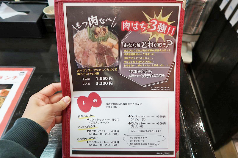 待っている間にディナーメニューも見てみましょうか。肉はち3強は「もつ肉なべ」と・・・