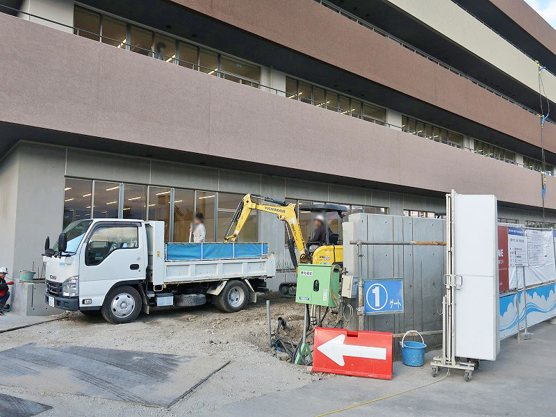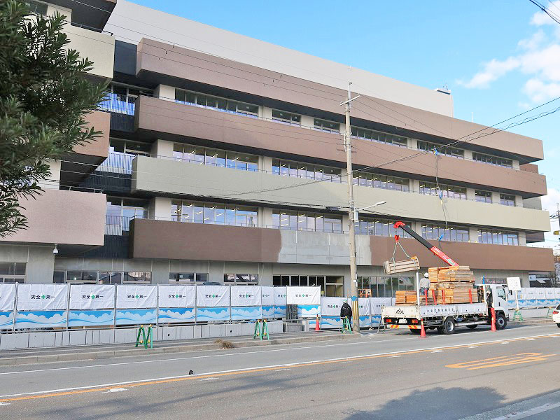 千成町で建設中の義務教育学校「庄内よつば学園」が姿を表していました。
