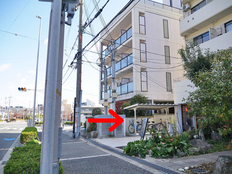 突き当りの「白島」交差点を、西に曲がったところにあります。