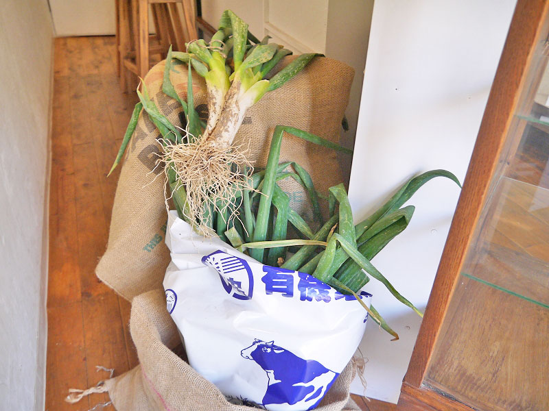 お店には、土づくりにこだわって育てられた立派な兵庫県産の「岩津ねぎ」が。しゅうまいの中にも入ってるし「いろどりしゅーまい」にはそのままドンと入っているんだって。
