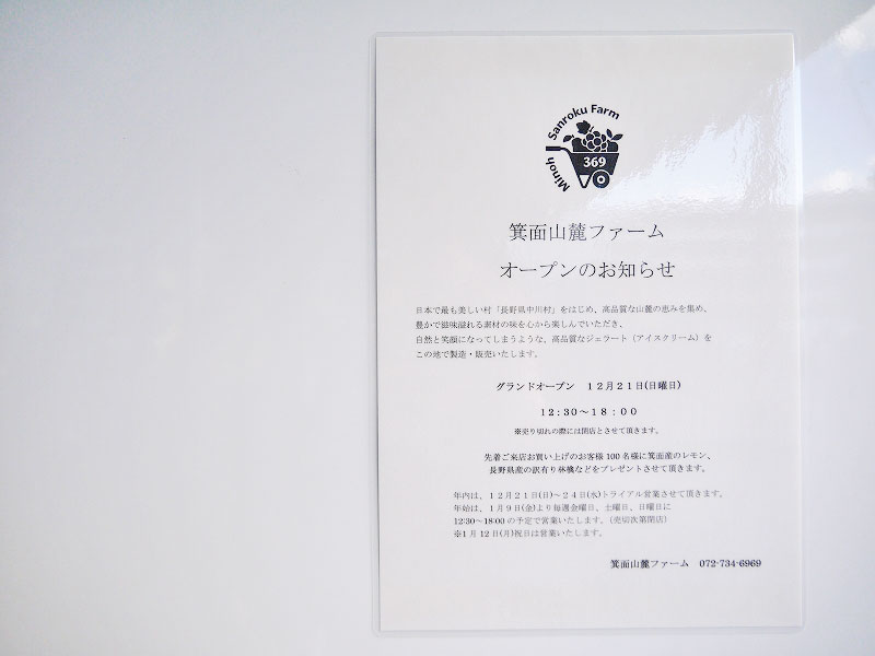 気になった人は「箕面山麓ファーム(minoh 369 farm)」で素材にこだわったジェラートを試してみてくださいね。
