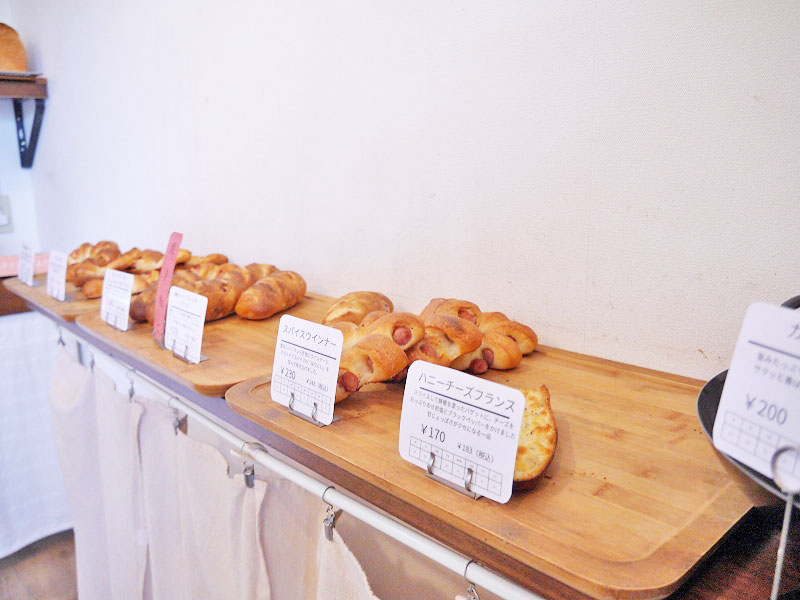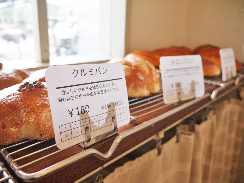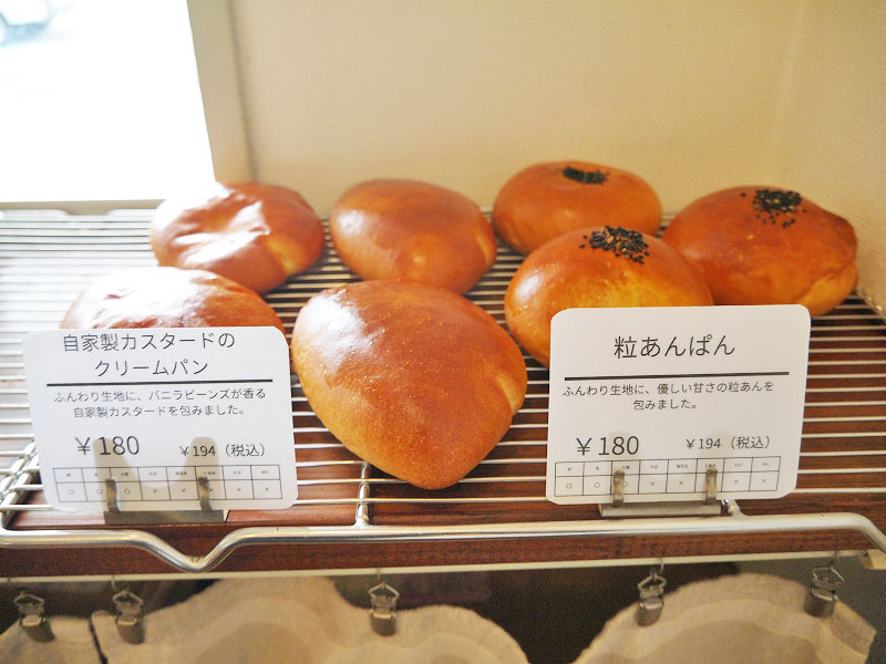 クリームパン、粒あんぱんも180円。100円台のパンがずらりです。