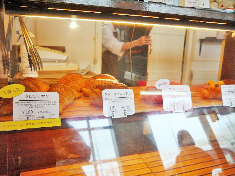 ショーケースにはショコラデニッシュやクイニーアマンなど、甘~い系のパンもスタンバイ。