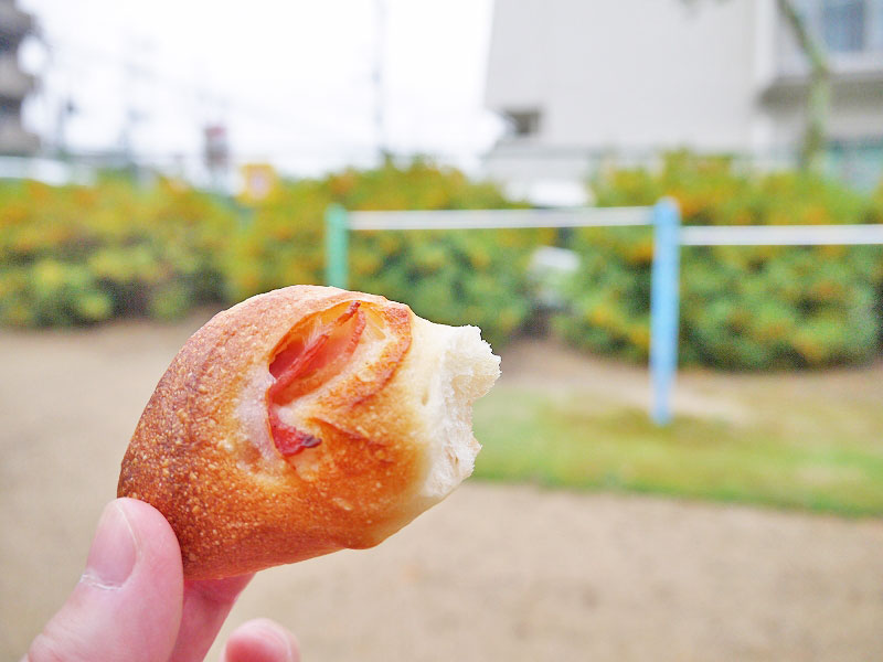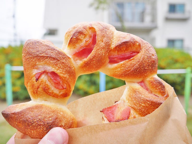 ハード系だけどそこまで固くはなく、大分県産の柚子胡椒がピリッと効いた大人なパン。ベーコンもたっぷりですよ。